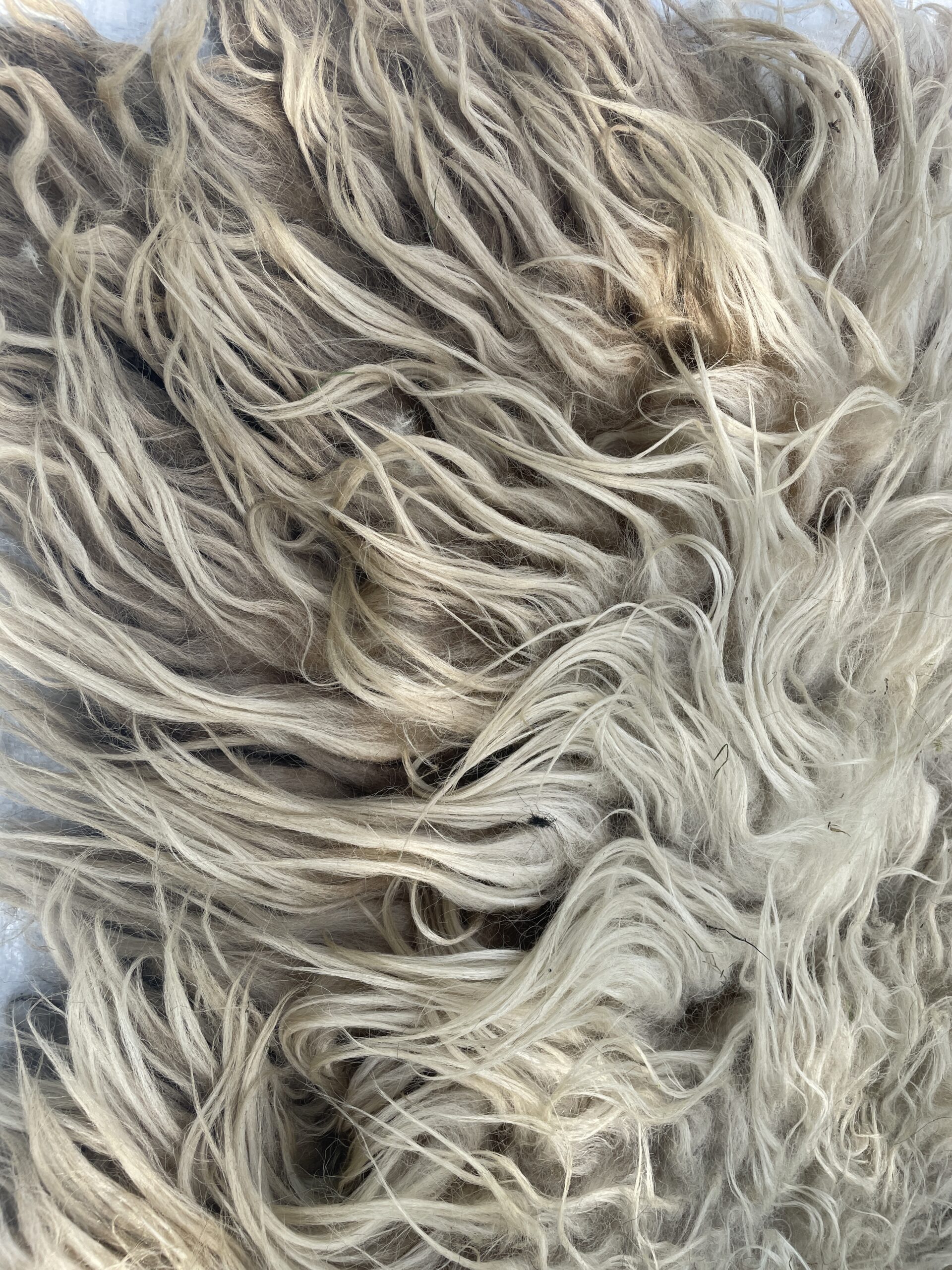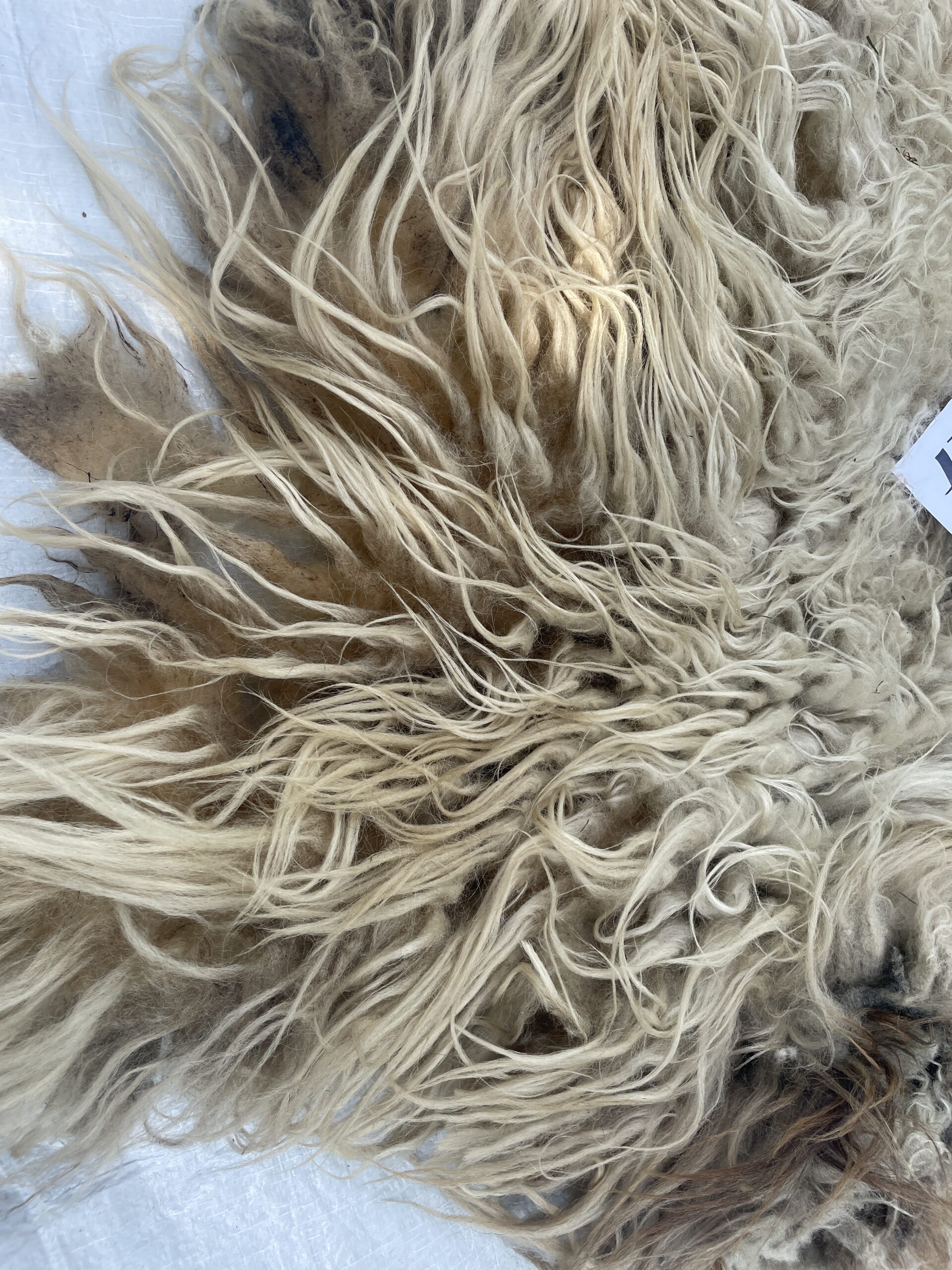 mooie lokkige grote vacht met goede samenhang en een stevig nekstuk met een toefje bruin